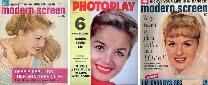 When people today think of classic Hollywood star Debbie Reynolds, who died Wednesday at the age of 84, they generally think of Singin’ in the Rain: Reynolds singing “Good Mornin’,” wearing an adorable rain jacket, shining those cherubic pink cheeks. Not me. I think of Reynolds, her eyes brimming with tears, on the cover of Photoplay, with the caption “I’M STILL VERY MUCH IN LOVE WITH EDDIE.” Or the cover of Modern Screen, a year later, depicting a smiling Reynolds holding her infant son, with the headline “Debbie Rebuilds Her Shattered Life: A Story of Courage That Every Woman Should Read!”